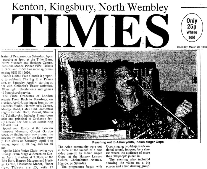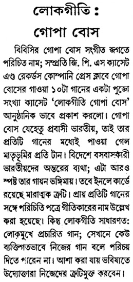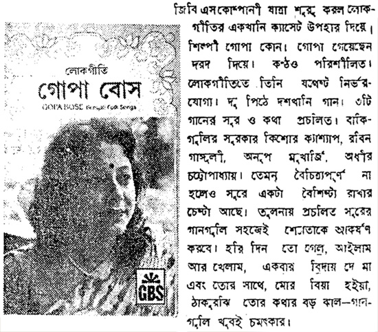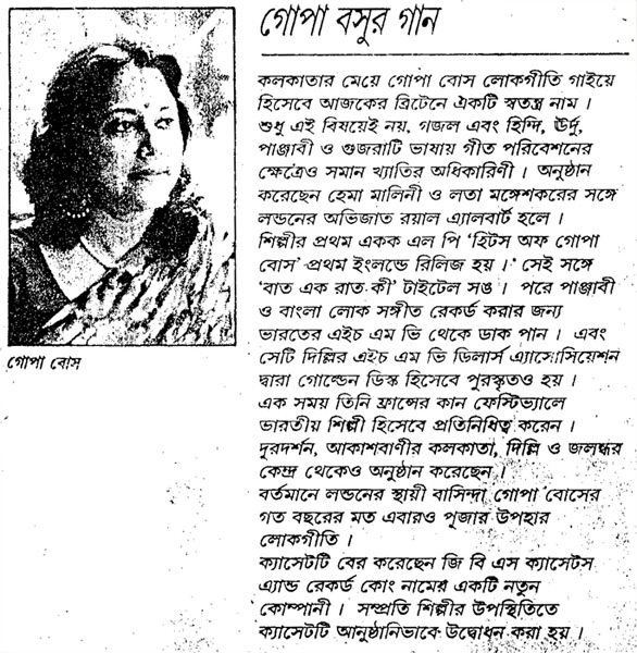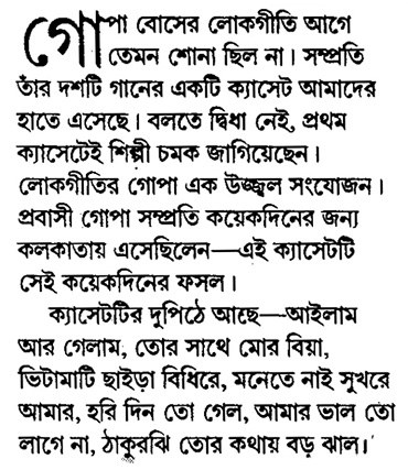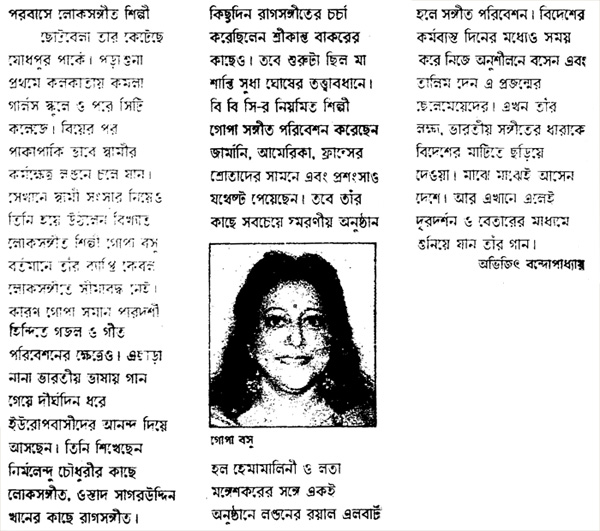 Gopa returns to India every Year to perform in concerts and to do new recordings on cassettes and for films.